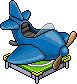 Sininen lentokone alustalla